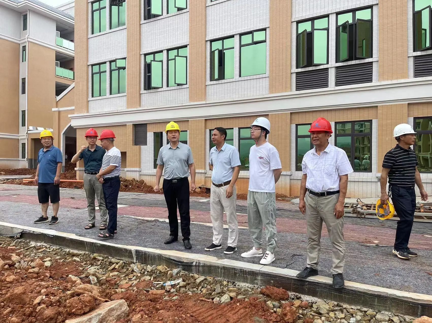 随后视察小组实地察看了新校区工程建设现场,在项目建设现场,钟淑平一行查看了学校的教学楼、宿舍楼、餐厅、进出道路等建设进展情况,认真检查工程建设质量以及教学、生活、消防等基础设施配备情况,并现场办公,协调解决项目推进中遇到的困难和问题,同时对学校新校区建设所取得的成绩给予充分肯定。