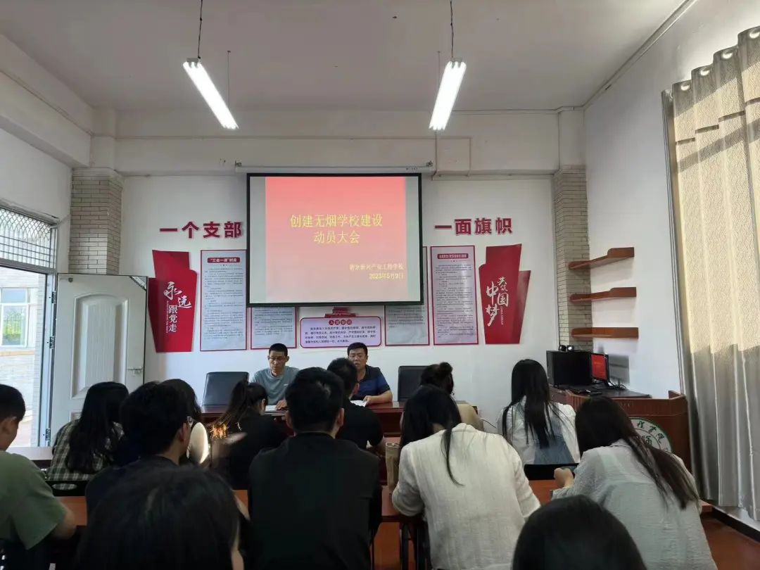 为响应国家号召,深入贯彻党的二十大精神,创造良好无烟校园环境,保障学校师生的身心健康,呼吁新工学生远离香烟,切实做好禁烟健康教育,养成良好的生活习惯,5月9日,新余新兴产业工程学校在仙女湖校区b201会议室召开创建无烟校园动员大会。
