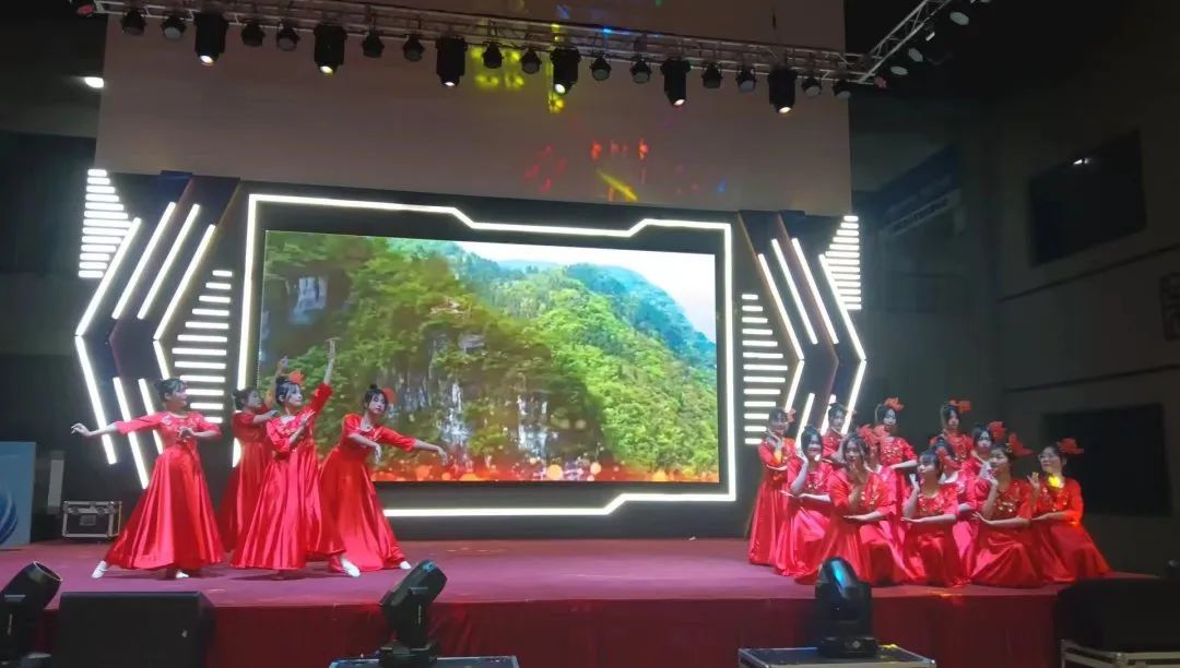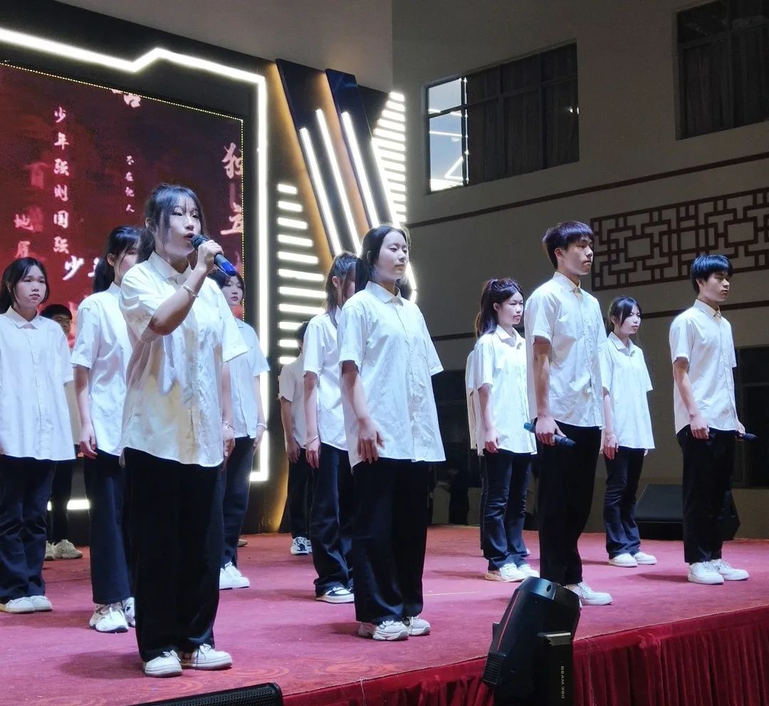 本次汇演由周莹、肖强、胡智红、胡俊轩四位同学主持,我校学生联袂带来《星星之火》、《少年中国说》、《与君书》、《丽人行韵》、《我的祖国》等精彩节目表演。