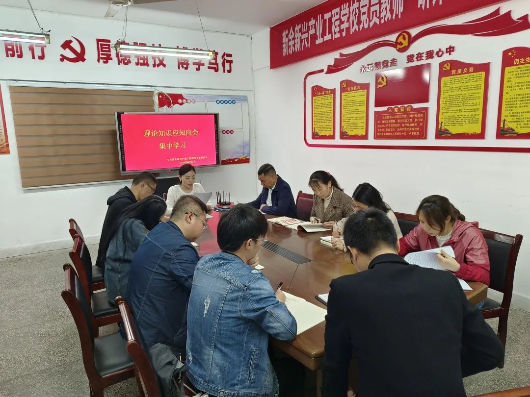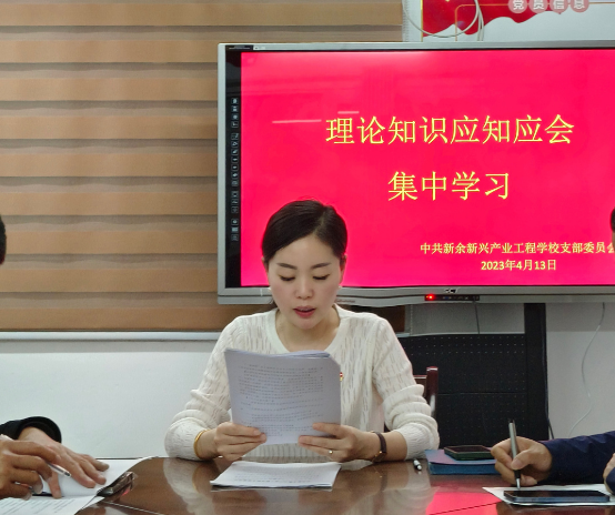 为深入学习贯彻党的二十大精神,全面落实学校各项工作,进一步提升学校党员教师的政治理论水平,夯实党支部建设根基,营造“比学赶超”的浓厚氛围。4月13日下午,新余新兴产业工程学校召开党员理论知识应知应会集中学习会。学习会由党支部书记郭振芳主持,校长李一龙及全体党员教师参加。