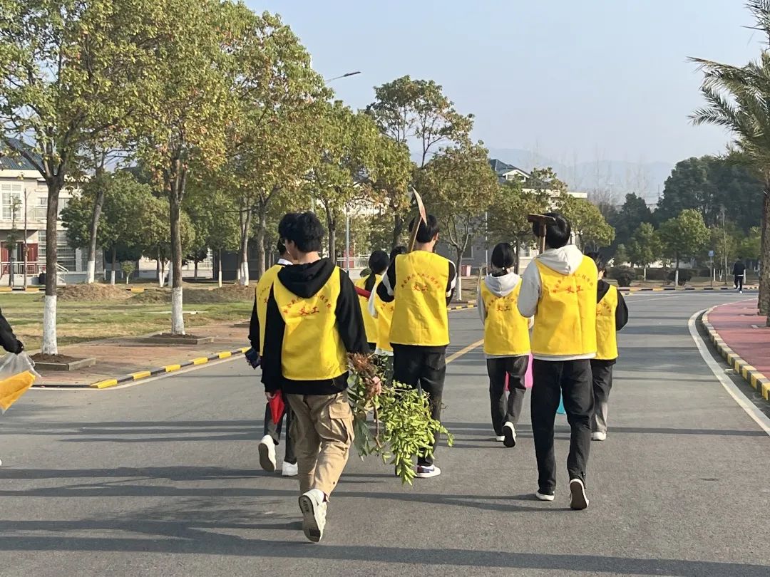 在团委书记兰芙蓉和学工处主任陈晨的组织下,志愿者们领取清扫工具,整装待发,他们干劲十足,身披黄色马甲的他们成为了校园里一道亮丽的风景。