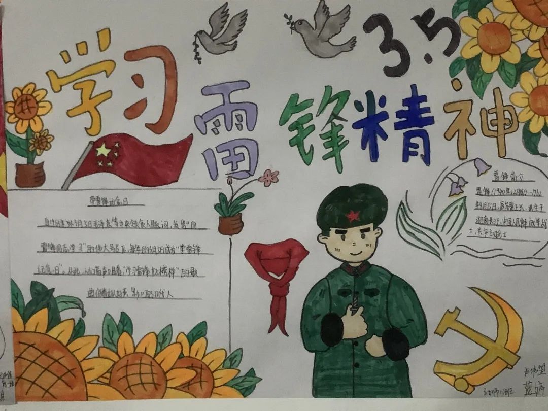 在制作的过程中,同学们更深的了解了雷锋生平,重温了雷锋事迹,明确雷锋精神的内涵,同学们们设计的手抄报内容突出主题,板式新颖多样,每位同学都用自己的最好的方式表现出学习雷锋精神的内涵。