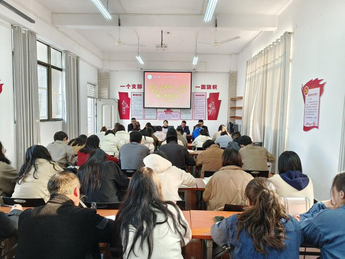 党支部书记郭振芳讲党课授课中,郭振芳围绕“如何掌握‘赶考精神’的内涵实质、如何用‘赶考精神’推动学校教育高质量发展与全体教师做思想交流。