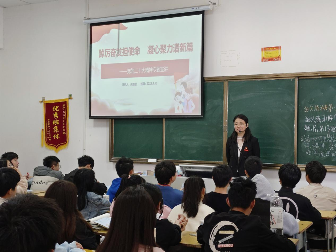 党员教师们利用思政课以“学习党的二十大精神”为主题,进课堂为学生上党课,不断增强思政课程铸魂育人实效,努力培养担当强国建设、民族复兴大任的时代新人。