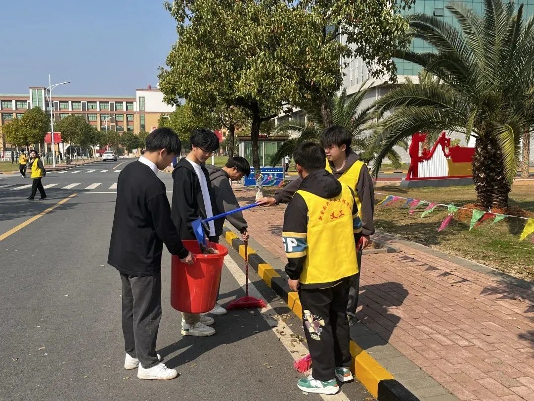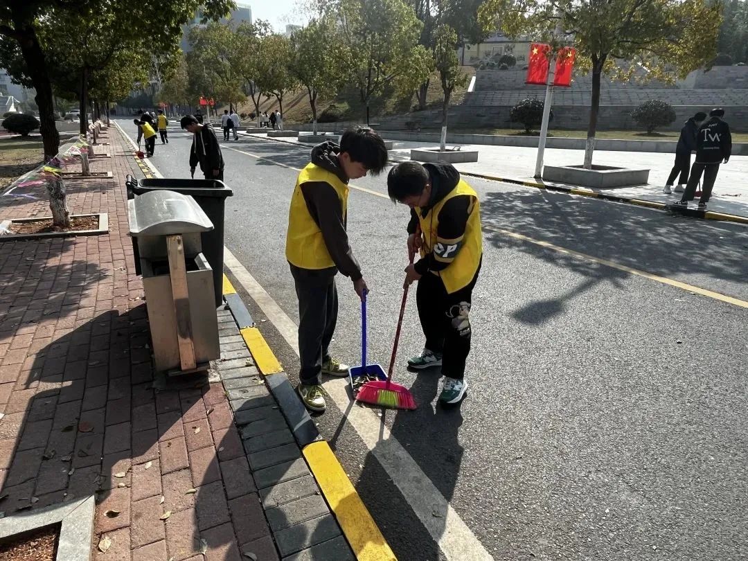 在团委书记兰芙蓉和学工处主任陈晨的组织下,志愿者们领取清扫工具,整装待发,他们干劲十足,身披黄色马甲的他们成为了校园里一道亮丽的风景。