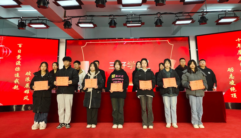 校长李一龙、党支部书记郭振芳、学工副校长刘鹏龙、教务副校长袁英、安全保卫副校长宋海瑞、办公室主任朱晓刚、学工主任宗萤莹、优秀校友刘开心出席大会,我校23级全体师生参加此次大会。表彰大会由刘鹏龙主持。