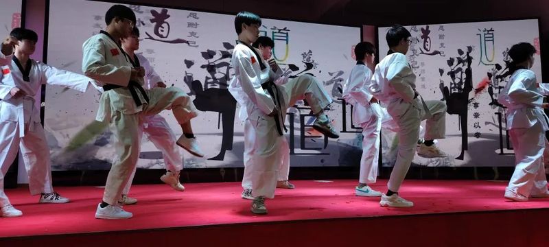 跆拳道表演《太极三章》精准的动作和稳定的身姿,同学们精湛技艺和协同配合,让我们感受到跆拳道所传递出的和谐与力量。