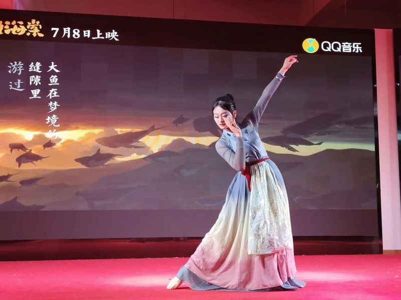 古典舞表演《大鱼》表演同学优美的身姿和流畅的动作,我们仿佛看到了一个巨大的鱼儿在波澜壮阔的大海中自由自在地穿梭。她以舞蹈的语言,带我们穿越时间和空间,触及内心深处的感动和共鸣。