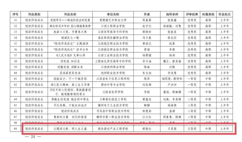 恭喜胡智红同学的作品——《以阅读之炬,明人生之盏》荣获2023 年职业学校“技能成才 强国有我”系列教育活动“悦读伴我成长”三等奖!