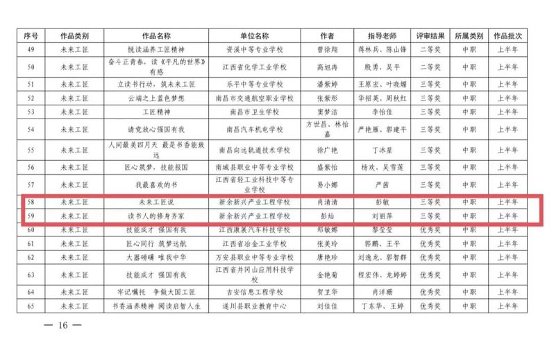 近日,在《2023 年职业学校“技能成才 强国有我”系列教育活动获奖名单》文件中,我校荣获“未来工匠”三等奖、“悦读伴我成长”三等奖、“展览类—书法”优秀奖;“展览类—绘画”优秀奖;“展览类—手工”二等奖共九项。