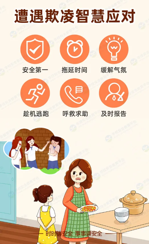 5.不管遭遇了怎样的恐吓,都要告诉家长,不要自己承受身体和心理上的创伤。